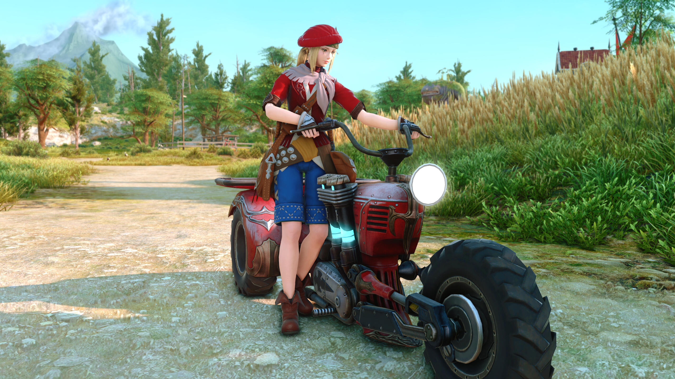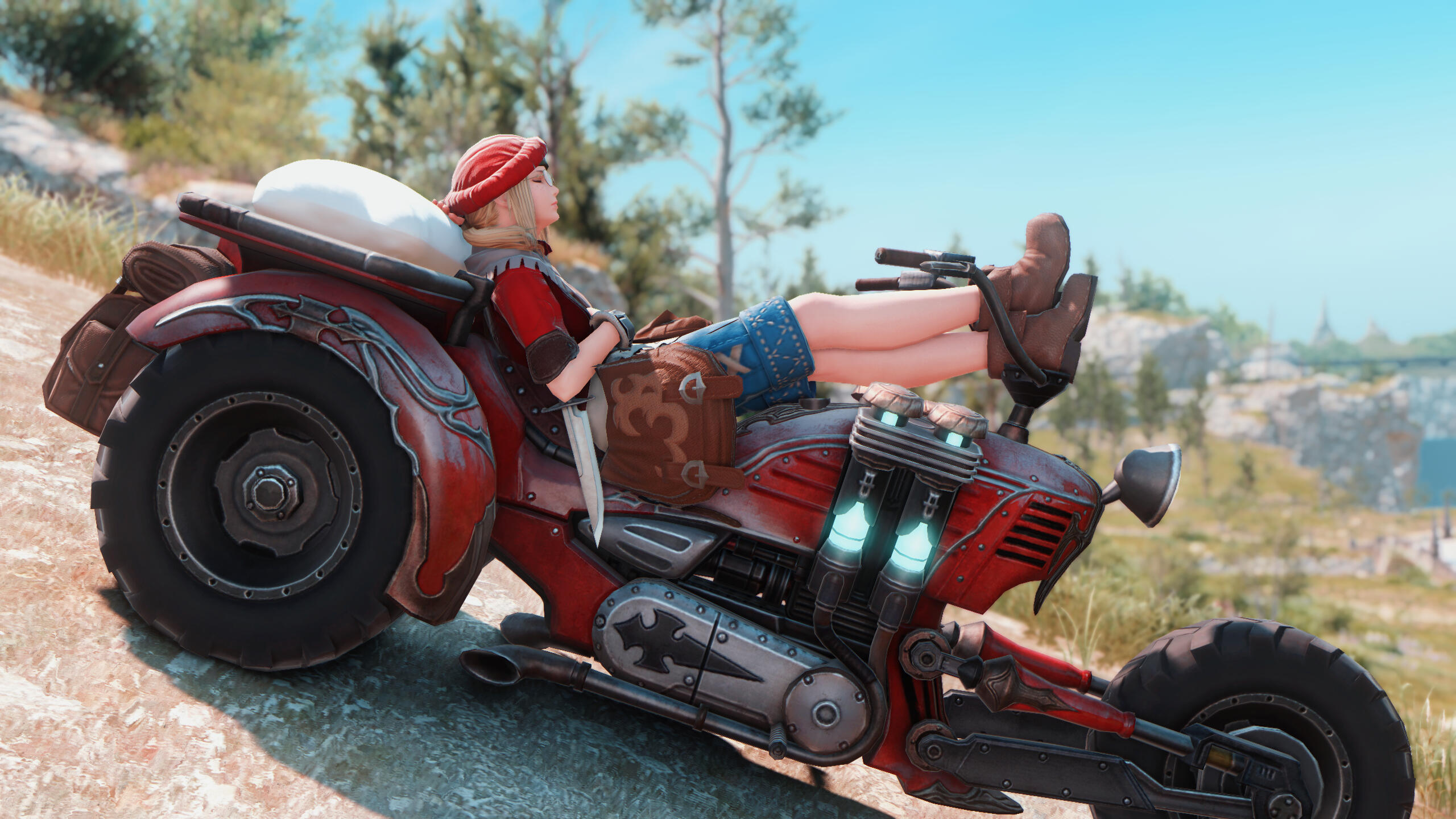 A high-performance delivery vehicle designed by Garlond Ironworks, the GL-II “Red Rocket” pairs a hardened alloy frame with a finely tuned 121-CP magitek engine. Four ceruleum reservoirs provide exceptional torque and reliability, allowing Marisa to traverse varied terrain with minimal lag. Whether navigating narrow urban alleys or long-distance coastal routes, the Red Rocket ensures every delivery arrives hot, intact, and probably ahead of schedule.