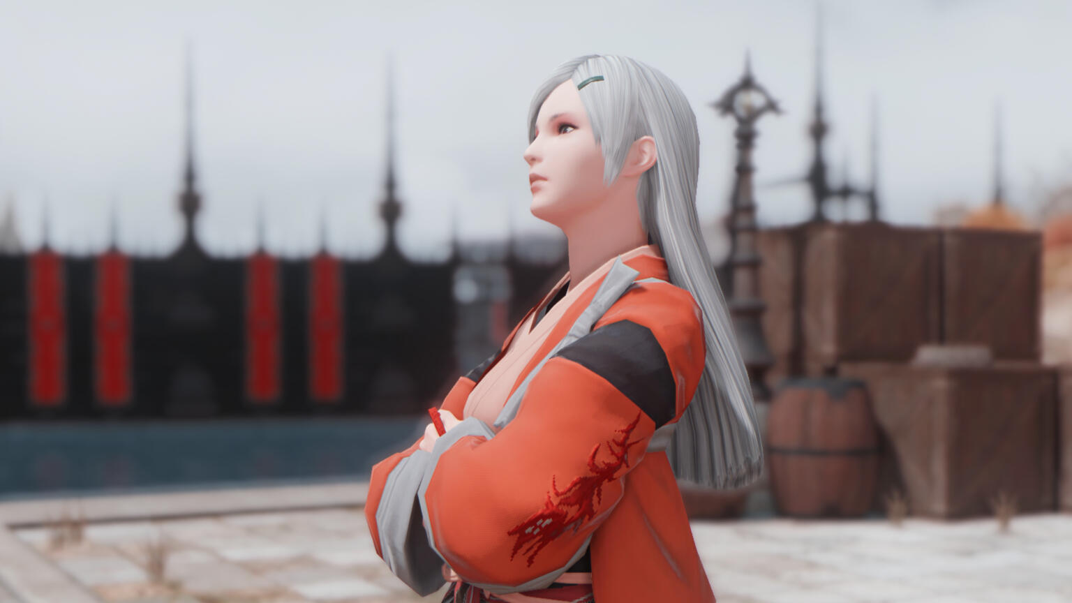 Hanako Takeuchi is Marisa’s Hingan-born mother, though one might easily mistake her for decades younger than her years. Now entering her forty-seventh winter, she bears an ageless grace she credits to the blessings of the kami—though she admits a disciplined diet and lifelong training do her a few favors as well. Once a rising star among Kugane’s geiko, her career showed every promise of brilliance… until the man who would become Marisa’s father swept her westward to Eorzea. In hindsight—given the “gentleman” later abandoned his family and left her stranded in a foreign land—it is a choice she quietly, but deeply, regrets.Demure, proper, and steadfast in her values, Hanako clings to the traditions of her homeland with a determination that borders on defiance. Her conservatism is often read by others as a gentle refusal to fully assimilate into Lominsan life, her mannerisms standing in pointed contrast to Marisa’s energetic, free-spirited integration. Yet beneath her strict exterior lies a boundless well of affection: she cherishes her daughter more than words can express, supporting Marisa’s path—pizza ovens and all—with the unwavering devotion only a loving okā-san can offer… even if that devotion sometimes threatens to smother rather than support.Those who know her well often find her at the docks of Aleport, standing quietly against the sea breeze and gazing toward the horizon. Whether she waits for a memory, for an apology, or for a man who abandoned her long ago, no one can say. But her vigil remains—a solitary figure keeping faith with the past, even as her daughter strives boldly toward the future.